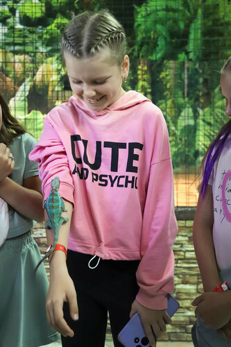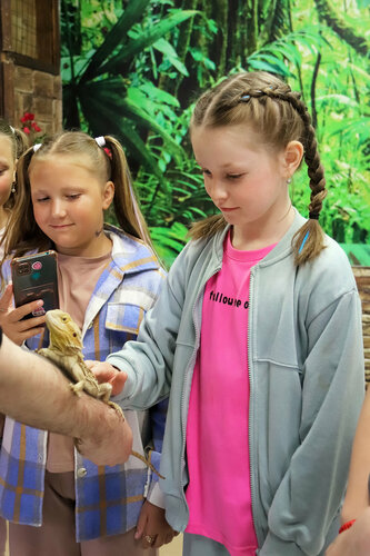 Организовывали экскурсию всей нашей команде девчонок 9-10 лет. Все и дети и взрослые были в восторге, час прошел как один миг!!! Экскурсоводу огромное спасибо, рассказывал интересно и с юмором. Много рептилий, дают практически всех потрогать, при нас кормили многих. Есть кролики, ежи и другие мелкие животные, я рекомендую к посещению однозначно!!!