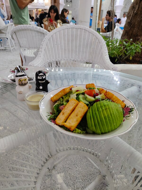 Вкусная национальная кухня с бюджетным ценником для туристического места. В выходной день в обеденное время была полная посадка, очередь на посадку быстро двигалась. В заведении кушали много местных арабов, что тоже говорит об уровне кухни и заведения. Меню для русских не очень понятное, есть арабское и английское название, из которых не всегда можно понять как выглядит блюдо, а фотографии есть не к каждой позиции. Брали салат с авокадо и ассорти шашлыков на двоих, наелись. Порции очень большие, так что не спешите заказывать много блюд.