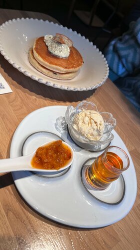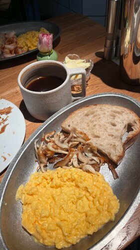 Кофейня небольшая, стол лучше бронировать заранее. Меню завтраков хорошее, есть разные вариации по еде. Ожидание не долгое, но и не очень быстрое, я бы назвала его средним. Если вы пришли насладиться завтраком и не куда не торопитесь - вам подойдет. Хорошее расположение кофейни, вроде в центре, но укромно спрятано от центральных улиц По еде: Порции небольшие, очень странно что в Скрембл (конструктор)не входит ничего кроме одного куска хлеба, ни зелени, ни салата. Брали большой завтрак - вкусно, красиво, но не наедаешься Панкейки брали с мороженой и мороженым - понравились. Классический круассан тоже вкусный. Также хочу отметить, что здесь делают хороший какао и кофе Вывод: считаю это место довольно хорошим для завтрака