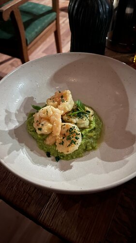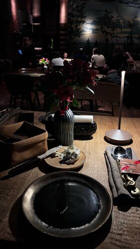Новый потрясающий Горыныч! Заходишь в ресторан, и буд то попадаешь в темную сказку. На стенах картины из сказок, те самые, что мы видели в книге Лукоморье в детстве (уверена, что дети 90х сразу поняли о чем речь ). Атмосфера просто потрясающая, весь интерьер продуман до мелочей, а в туалет заходишь, буд то попадаешь в отдаленное темное царство. Музыкальные сеты на фоне просто любовь, задают настроение и атмосферу. Я так много пишу про интерьер, потому что в Горыныче он один из главных элементов ресторана. Сюда надо прийти уже только за этим По еде: Брали пасту с белыми грибами:4/5. Вкусно, некоторые грибы размякли (понимаю, что они замороженные, но все же). Порция небольшая Креветки с гуакамоле: 5/5. Все супер, гуакамоле много, поэтому остатки с удовольствием намазывали на ваш вкуснейший хлеб Десерт с хурмой: 5/5. Шедевральный. Такого сочетания не пробовали нигде! Рекомендую. Внутри орех макадами, и бисквит, как нам показалось, с примесью коньяка, как в традиционном рецепте шоколадного бисквита Чай таежный:5/5. Отдает еловыми шишками. Нам очень понравился По моему мнению, этот ресторан не только продолжил концепцию первого Горыныча, он ее усилил. Теперь этот Горыныч мой любимый :)