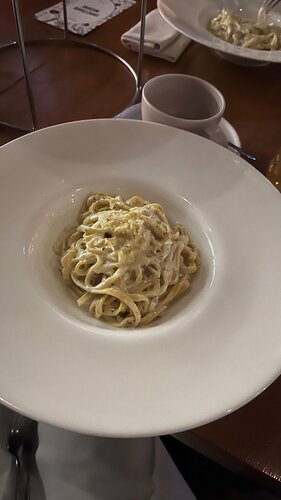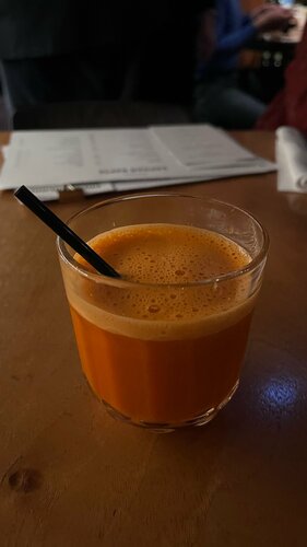 Уютный ресторан. Есть два зала, в одном часто проходят мероприятия (сегодня была винная дегустация), в другом обычный формат столиков в ресторане. По еде практически все понравилось, но подача не самая быстрая Ризотто с белыми грибами: 4/5. Вкус ненасыщенный, сам рис переварен Фокачча с трюфелем: 5/5. Восторг! Очень вкусно. Рекомендую Пицца груша и горгонзола: 5/5 Паста сырная: 5/5 По напиткам тоже все хорошо. Брали много разных чайников чая и коктейлей - все понравилось. Морковный фреш 5/5 Рестораном и кухней остались довольны