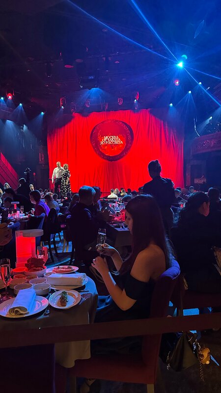 Посетили премьеру «Москва: От заката до рассвета». Продолжительность: 3 часа, заканчивается в 23:00 (между шоу 2 антракта). Фото с ракурса стола 86 Благодарю проект «Одеон» что делаете каждого зрителя важным, особенным это отслеживается на каждом этапе от встречи в фойе до обслуживания. Такого королевского отношения нет ни в одном месте Москвы. Наш официант Анастасия отдельная благодарность ✨ за ненавязчивое обслуживание и настолько искреннее внимательно, уважение чувствовалось на каком то ментальном уровне. Возрастной диапазон нашего столика от 24-64 лет. Мы все остались под большим впечатлениям. Это было грандиозно! Очень рада, что побывала на таком мероприятии. Я бы и ещё повторила. А какие все зрители красивые словно мы все побывали на красной дорожке где ты главный герой вечера. Спасибо проекту Одеон, процветания 👏🏼