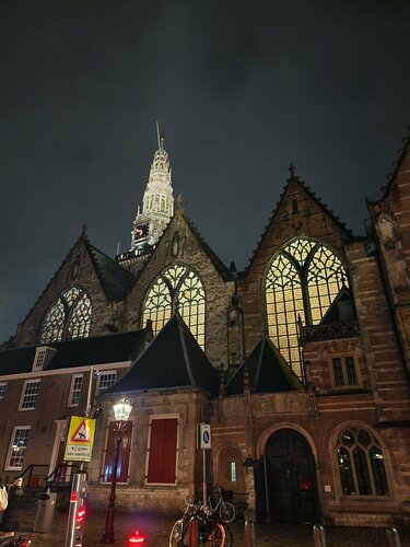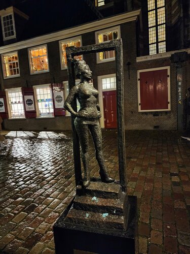 Очень красивая старая церковь. Так уж получается, что голландцы настолько терпимо, что в стенах церкви и бар, и магазин шоколада. А рядом с церковью памятник жрицам любви.