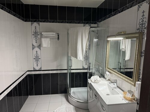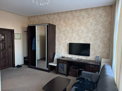 Соответствует 3 звездам. Всю ночь шумел кондиционер за счет которого греется комната при чем пульта отключить не нашел. Номер большой, душевая слишком большая. Тапочки есть, зубные щетки и все принадлежности есть. Вода в номере и бар в холодильнике. Чая нет с чайником. Отделка в южном стиле. Кстати очень большой плюс, что находится рядом с трассой (особенно когда не работает навигация). Завтрак 600.