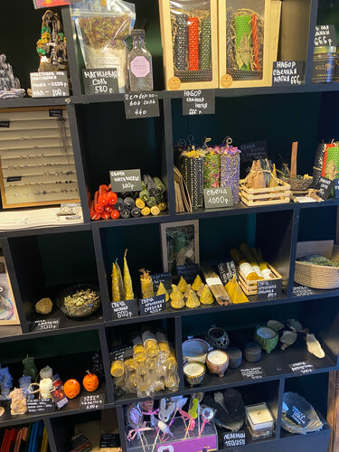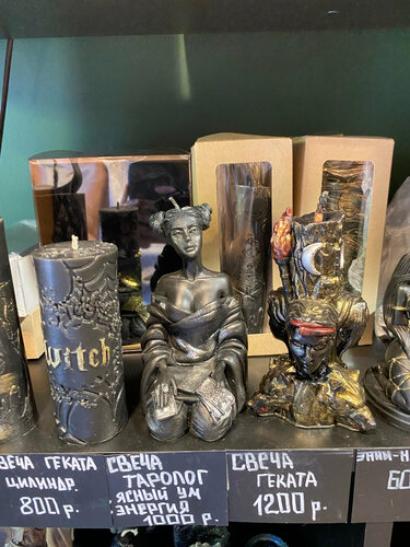 Очень интересное , необычное место со своей необычной атмосферой . Проконсультировали и погрузили в ведьмин мир . Много свечей , делают расклад таро и интересные ингаляционные сигаретки . Понравилось !!