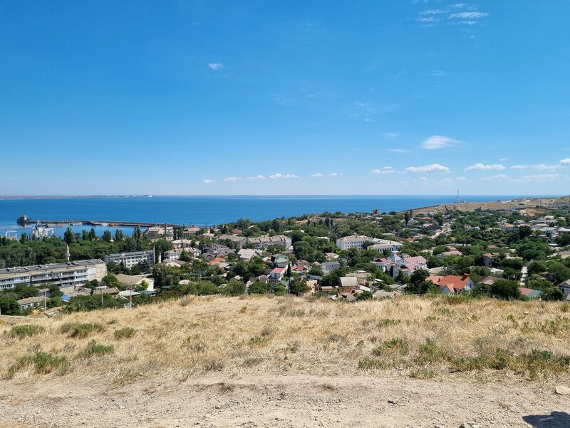 Вид шикарный, охватывает кажется всю феодосию. Но имейте в виду на момент обзора (июль 2025 года) площадка это просто вытоптанный пустырь к которому ведут тропинки. Однако на момент когда делались фото рабочие уже заливали фундамент под площадку с освещением, лавками и прочими удобствами. Подъем не сложный, но берите воду и берегите голову от солнца)