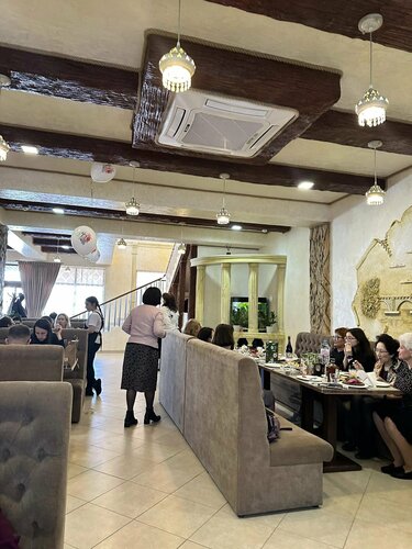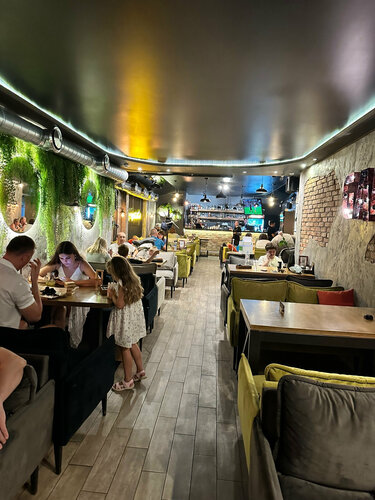Очень любим ходить в кафе с мамой и всей семьей. Прям веет кафе атмосферой семейного. Приятный спокойный интерьер, нет кричащих цветов. Столы широкие, удобные диваны. Есть игровая зона для детей, иногда есть няня которая присматривает и развлекает деток. Есть также и большие столы для больших компаний. На втором этаже есть банкетный зал, где часто проводят корпоративы, празднуют дни рождения. По меню оно более чем разнообразно, есть уклон на крымско-татарскую кухню, но также такие блюда как популярный салат Цезарь тоже имеются. Цены адекватные, средние. Алкоголя в кафе кроме пива нет, но разрешают принести с собой при наличии чека, нет пробкового сбора, что плюс.