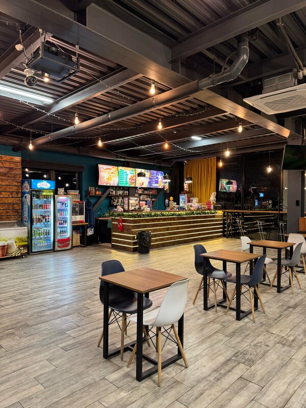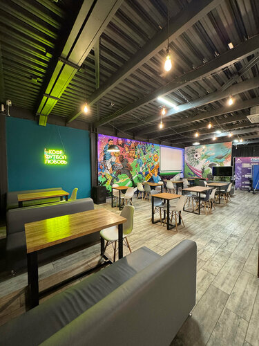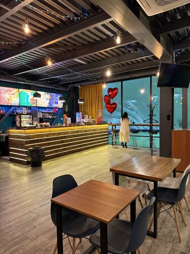 Уютное пространство для кофе и перекусов пока дети на тренировке. Есть настольные игры, настольный теннис и можно поиграть в плойку. А панорамные окна отличное решение для наблюдения за тренировкой или турниром. Персонал приветливый.