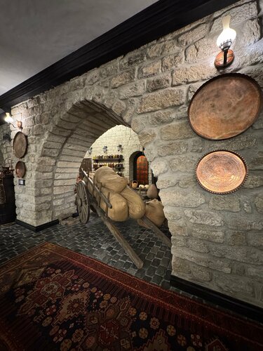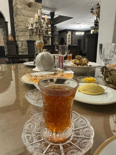 Обычно если нет красивого интерьера, цепляют вкусной кухней…К сожалению ни интерьера, ни кухни 🤷‍♀️ все приготовлено заранее - разогревают. Кутабы из лаваша. Мангал салат - это не овощи на гриле, а маринованный салат из банки. Пита - очень жирная и непонятный вкус. Очень дорогая столовая. По меню поели на 36 манат, хозяин заявил 70. Спорить не стали - оплатили и ушли. Видимо поэтому и нет людей у них. Не рекомендуем