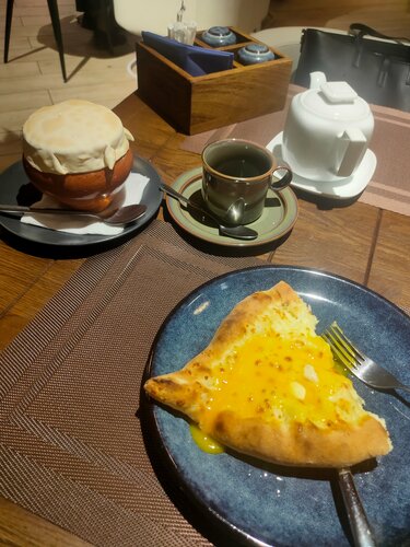 Уютное красивое место! По вечерам живая музыка! Отдельное спасибо кухне! Отличное мясо и хачапури! Благодарность повару за тыквенный суп! Желаем процветания! И быть сытыми и довольными как мы сейчас)
