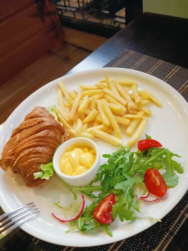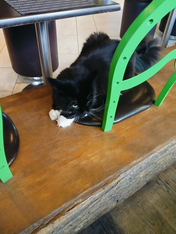 Уютное кафе, встречает мейн-кун Сенатор, большой и красивый котик, поют птички. Вкусные завтраки и выпечка