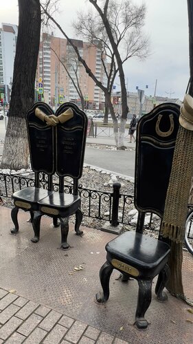 «12 стульев желаний»- фантазийный арт-обьект для ценителей одноименного произведения))) На каждом стуле прекрасные послания, которые можно исполнить, присев и загадав желание🤩 Необычно, позитивно и практично))