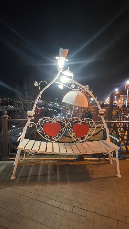 Очаровательная скамья для романтических встреч на мосту влюбленных!😍 Среди мерцания огоньков на набережной и звезд на небе, держаться за руки и шептать друг другу слова любви…ммм🩷 Мило, креативно, позитивно)))
