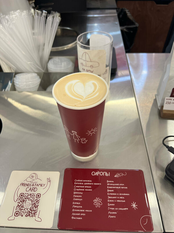 Очень вкусный кофе, и приятная цена за такой большой объем. Заходила в этот тц за косметикой, и за одно решила купить кофе по пути. Это место находится сразу у входа.