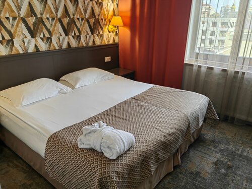 Что понравилось. Оснащение номеров: халаты, зубные щетки, тапочки, вода, чайный набор - все есть. Чистота в номере, приветливый персонал. Приятный завтрак: легкая атмосфера, неплохой выбор блюд, нет столпотворения. Что можно подправить. На двухспальной кровати почему-то два матраса, с "классической" щелью между ними. Неоднозначное решение с парковкой: она во внутреннем дворе, за шлагбаумом. Чтобы туда попасть, нужно сначала зарегистрироваться. Приходится парковаться на платной парковке перед отелем. Также имейте в виду, что если берете номер категории "Стандарт", то это будет угловой номер, с видом на крышу. На крыше венсистемы, которые прилично гудят. Если это важно, то лучше выбрать другую категорию номера. В номерах приличная слышимость. Может не повезти с соседями. Но в целом отель оставил приятное впечатление. С учётом клиентоориентированности персонала я поставлю пять. Вернусь ли я в этот отель? Да.