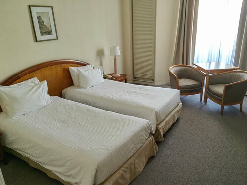 Гостиница оставила смешанные впечатления. Мне предоставили номер во втором корпусе, который находится ближе к реке. Гостиница удобно расположена: рядом набережная, а через небольшую реку — крупный торговый центр. Номер оказался довольно комфортным. Понравилось, что отель предоставил не одну, а две бутылки воды — газированную и негазированную. Однако, к сожалению, тапочек и зубных щеток не было. Теперь о недостатках. Парковка у отеля очень маленькая, не больше чем на 10 автомобилей, хотя сам отель большой, и для машины может не хватить места. Впрочем, мне повезло с парковкой. Еще один минус — высокая слышимость в номерах. Но больше всего меня разочаровал завтрак. В тесном зале кафе, где один официант пытался (и безуспешно) обслужить всех гостей, царил хаос из неубранной посуды. Омлета на завтраке, увы, не было, а сломанная кофемашина лишила нас утреннего кофе. Из-за нехватки мест нам пришлось делить стол с незнакомым человеком, что создало дискомфорт для всех. Учитывая высокие оценки отеля, я ожидал большего.