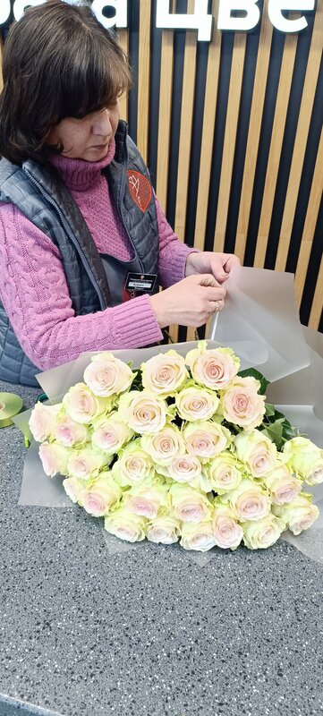 Обслуживание отличное. Букеты норм, но маленькое разнообразие цветов, а роз, конечно - много, персонал вежливый, профессиональный и отзывчивый! Парень подсказал, объяснил, качественно упаковал цветы!) Букет (радовал) простоял дома ещё 10 дней! Из минусов- упаковка платная(, при том, что приобретал букет из 29 роз на 70см ножке!