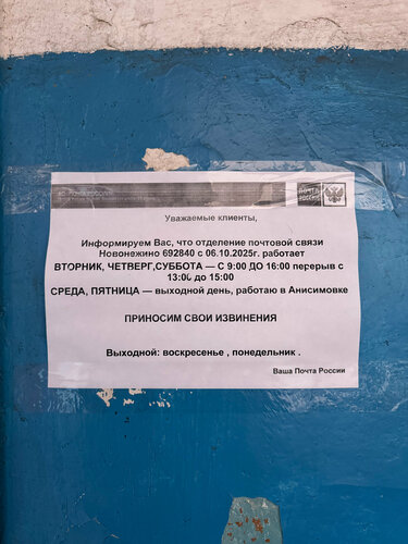 Почта и так работает 3 дня в неделю, так сотрудники ещё устраивают себе доп. выходные. Это как-то у них из зарплаты вычитается? Спасибо, теперь я не узнаю, что за письмо мне пришло. Продлить срок хранения нельзя. Зато сотрудникам прогуливать свою работу можно. Потрясающе! Ну и внешний вид входной группы о многом говорит.