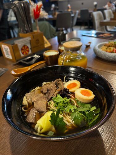 Давно откладывала поход сюда, и теперь наконец-то решилась. Официанты максимально вежливые, и очень быстрые, могут сориентировать по меню. Подача блюд быстрая, что сокращает время ожидания. Очень люблю азиатскую кухню, и здесь она хорошо передана, особенно роллы, рамен и лапша с уткой. Мне понравилось!