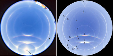 Фишай-съёмка с антарктической станции с выделением всех видов гало. Источник: sciencedirect.com
